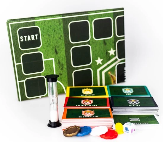 | Verpakkingsinhoud | Speelbord, 400, vragenkaarten, 16, actiekaarten, dobbelsteen, zandloper, 5, speelfiches, en, de, spelregels |