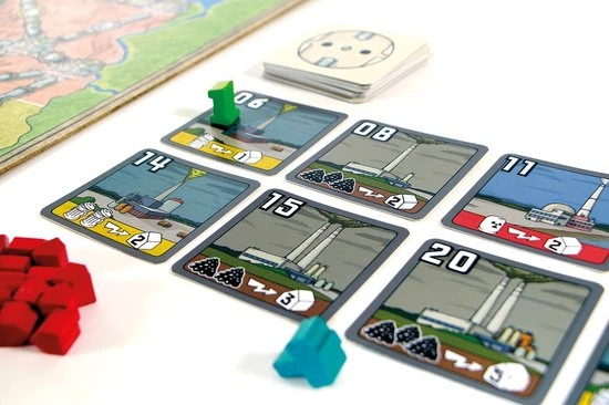 | Verpakkingsinhoud | Inhoud:, 1, dubbelzijdig, speelbord, 132, houten, huisjes, 84, houten, brandstoffenblokjes, 4, tegels, geld, 6, overzichtskaarten, 44, elektriciteitscentralekaarten, 5, fiches, spelregels |