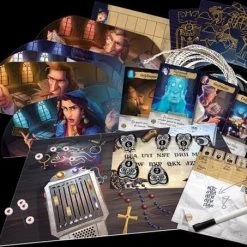 | Verpakkingsinhoud | Inhoud:, 1, hoofdspeelbord, 35, interactiekaarten, 28, verhaalkaarten, 3, geestinteractiekaarten, 5, detectiveschermen, 5, onderzoeksbladen, 1, geestblad, 1, ganzenveer, 5, ouijabordfiches, 3, geestmeterfiches, 13, tarotkaarten, 6, pennen, 10, wondfiches, 2, touwen, voor, galgknopen, de, spelregels |
