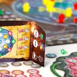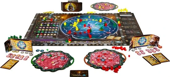 | Verpakkingsinhoud | Inhoud:, 1, speelbord, 4, toverketels, 4, overzichtskaarten, 4, zichtschermen, 4, grote, tovenaars, 44, kleine, tovenaars, 4, dierfiches, 60, heksenfiches, 80, energie-eenheden, 28, kristallen, 4, positiestenen, 12, scorestenen, 15, speciale, heksenfiches, 10, uilenfiches, 21, toverfiches, 40, perkamentkaarten, spelregels |