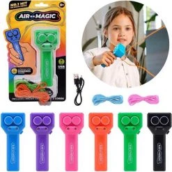 Air Magic is een nieuwe speelgoed hype. Zet ‘m aan en kijk hoe het touw de zwaartekracht trotseert, het is echt magisch! Speel samen op het schoolplein en verzin je eigen toffe tricks. De Air Magic heeft een oplaadbare accu en in de set zitten 2 extra touwtjes en een Micro USB oplader, zodat je overal waar je komt lekker kunt spelen! De Air Magic heeft gegarandeerd 40 minuten speeltijd en de batterij is na 2 uur laden weer helemaal vol.