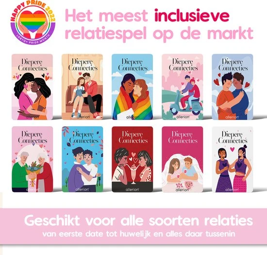 De vragen op de kaartjes zijn zo opgesteld dat deze ook erg geschikt zijn voor relaties uit de LHBTIQ+ community. Hier is het extra belangrijk om over je gevoelens en ervaringen te vertellen. Deze kaartjes helpen je daarbij.