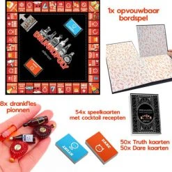 Geen idee welk drankspel je wilt spelen? Met Drunkopoly neem jij het op tegen je vrienden en combineer je de leukste spelletjes! En het belangrijkste, er zijn heel veel shotjes! Zeer uitgebreid drankspel tot wel 8 personen, inclusief gratis kaartspel met 54 cocktail recepten. Maak je klaar voor een gezellige avond, it’s Time to get drunk!