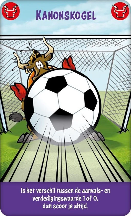 In het humoristische kaartspel Ballen met Stieren nemen twee voetbalcoaches het tegen elkaar op. Ze kiezen hun ‘basiself’, een set speciale voetbalacties en gaan met die banaan! Natuurlijk moeten ze niet alleen rekening houden met een koeienvlaai of een scherpe tackle, want ook de scheidsrechter en de VAR hebben (bijna) alles in de gaten. Wie gaat aan de haal met de prestigieuze koeiencup met de grote hoorns?