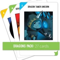 Dragons is een expansie voor het kaartspel Unstable Unicorns en voegt een draken thema aan het spel toe, Magic kaarten en gloednieuwe Unicorns. Inhoud: 54 nieuwe kaarten.