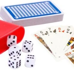 Heb jij altijd al willen weten hoe je moet hartenjagen? Of wat de spelregels vanpesten zijn? Weet jij nog wat je precies moet gooien voor een grote straat? En kan je uitleggen hoe Mexicanen ook alweer gaat? Met deze complete set kun je de allerleukste kaart- en dobbelspellen leren! Leuk voor een gezellige avond met dehele familie, voor onderweg of op vakantie! Inhoud: 2 pakken speelkaarten, instructieboekje met uitgebreide uitleg voor 100 kaart- en dobbelspellen, dobbelbeker, scoreblock en 5 dobbelstenen. Voor 1 tot 6 spelers vanaf 6 jaar.