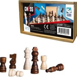 Speelgoed bordspellen. bestaande uit 1x Houten schaakbord/dambord 40 x 40 cm, 1x Set van 32x stuks houten schaakstukken in opbergkistje