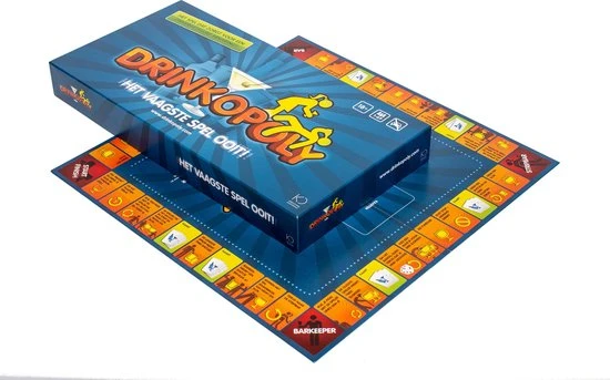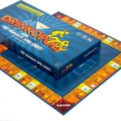 Bordspel Drinkopoly – Het vaagste spel ooit! Drinkopoly is ontworpen om urenlang plezier, gelach en kattenkwaad te bieden thuis, op feestjes of uitjes. Verspil geen tijd aan het nadenken over ideeën voor partygames, maar breng gewoon ’s werelds meest populaire drankspel tevoorschijn om het ijs te breken en een (on)vergetelijke tijd met je vrienden te hebben. De winnaar is degene die als eerste de taken heeft volbracht en de reis eindigt. Het bord heeft 44 velden met verschillende taken en 50 speciale kaarten die de verschillende taken omschrijven. Daarnaast bevat het spel een dobbelsteen en 6 pionnen. Te spelen met maximaal 6 spelers. Taal: Nederlands