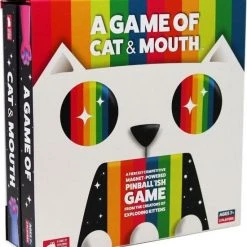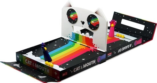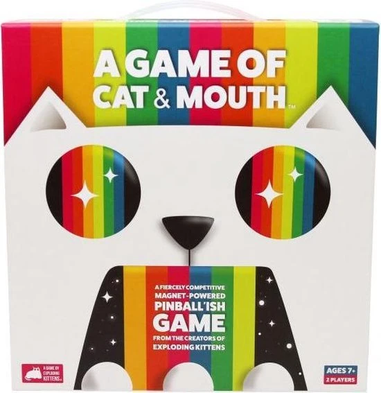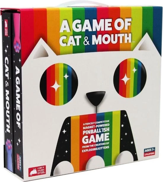 A Game of Cat & Mouth is een hilarisch partyspel van de makers van Exploding Kittens. Spelers proberen zo snel mogelijk de kleurrijke ballen door de bek van de kat naar de kant van hun tegenstander te schieten.