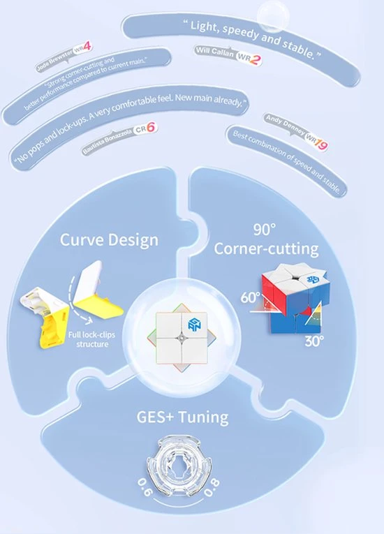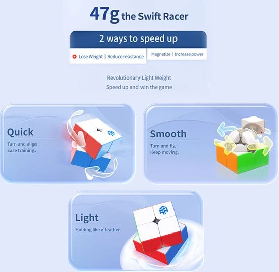 De GAN 251 V2 is een niet-magnetische, verstelbare 2?2 van GAN. Dit is een lichtgewicht, snel draaiende speedcube met een matte buitenkant en de klassieke, stickerloze heldere tinten van GAN. De cube weegt maar 47 gram en is 50 mm groot. Inclusief een aanpassings-tool.