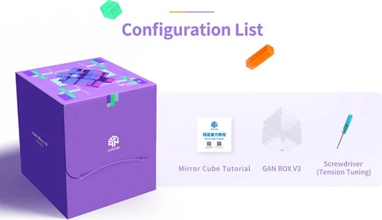 Wat zit er in de doos? GAN Mirror M, Instructies voor het oplossen, GAN opbergdoos en een schroevendraaier.