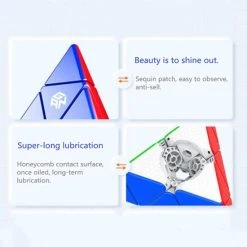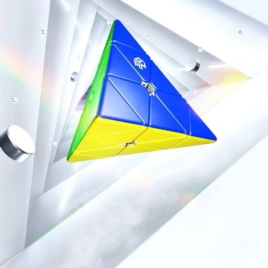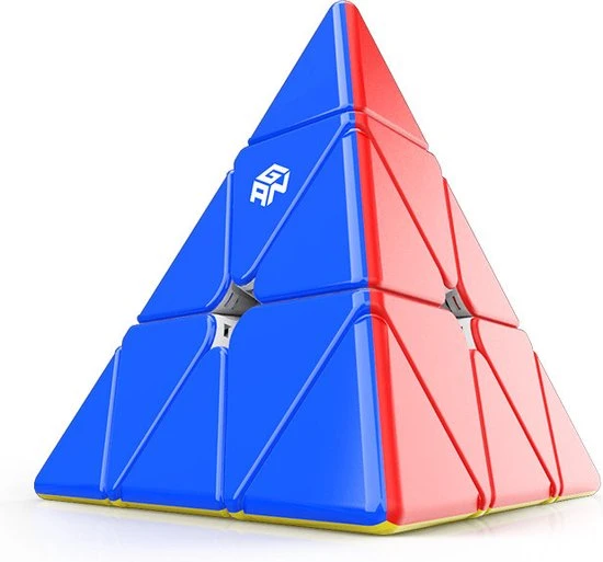 - Door de Pyramide vorm heeft hij een extra draai-as, waardoor een andere puzzelstrategie nodig is.