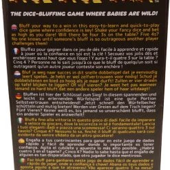 Misleid je vrienden om te voorkomen dat ze je bod uitdagen, maar blijf goed opletten, zodat je hen op het juist moment op een bluf kunt betrappen. Als je de laatste speler bent die minimaal ??n dobbelsteen overheeft, dan heb je het spel gewonnen! Dice Dice Baby is het ideale spel om te spelen met het gezin of met vrienden. Daag elkaar uit en zet je beste pokerface op!