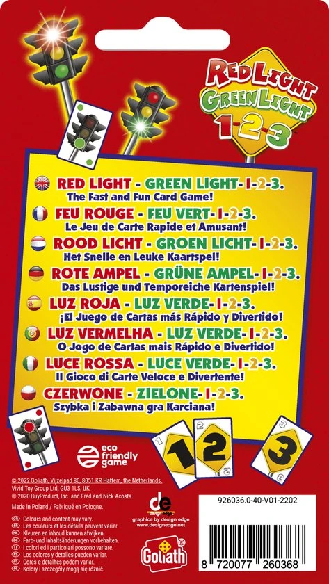 Het doel van Red Light Green Light is om al je kaarten uit je hand te spelen in de volgorde ROOD LICHT, GROEN LICHT, 1, 2, 3 voordat je tegenstanders dat doen.