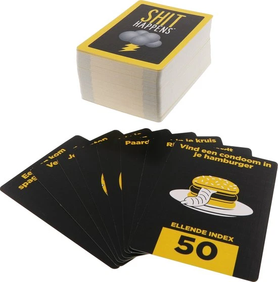 Shit happens.. Ja het leven valt niet mee.. Shit Happens is een hilarisch en weerzinwekkend, maar levensecht partyspel. Je komt allerlei ongewenste situaties tegen die je moet rangschikken op je ‘lane of pain’ die loopt van 1 tot 100. Wat is erger? Je vader in z’n nakie zien of elke nacht in bed plassen?