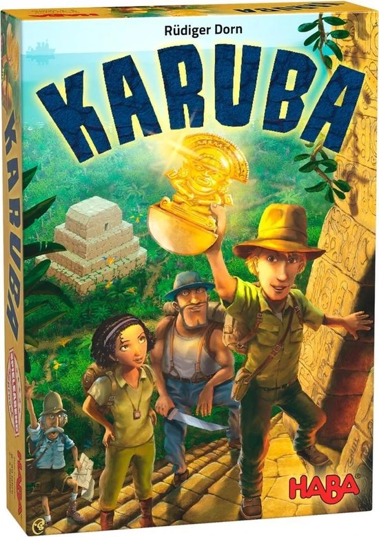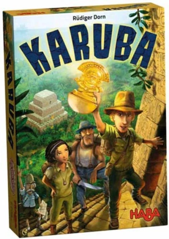 Karuba van het Duitse merk Haba is een legspel. Eindelijk! Na een lange boottocht hebben de schattenzoekers het eiland Karuba bereikt en kunnen ze op zoek naar de verborgen schatten. Wie brengt zijn expeditieteam zo slim mogelijk over de junglewegen, let op voor zijn medespelers en kijkt uit naar goud en kristallen aan de rand van de weg? Het belangrijkste is echter om tijdig te beginnen rennen! Enkel wie als eerste aankomt, krijgt de waardevolste tempelschatten! Cadeautip! Bevat: 4 eilanden, 64 kristallen, 16 goudklompjes, 16 tempelschatten, 16 avonturiers, 16 tempels, 144 junglekaartjes, 1 handleiding.