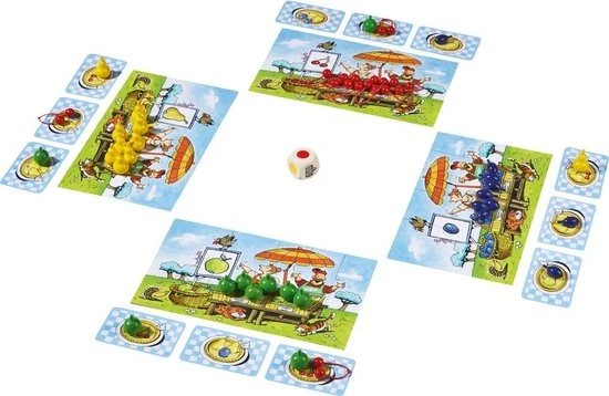 Kunnen de kinderen de rijpe vruchten plukken, voordat de brutale raaf de boomgaard bereikt? Kunnen de raven in hun nest in de boom raken, zonder dat de tuinierster hen betrapt? En wie maakt de mooiste fruittaart? Deze spelletjesverzameling bevat veelzijdig materiaal van hout en karton voor tien verschillende memo-, kaart-, voel- en dobbelspellen.