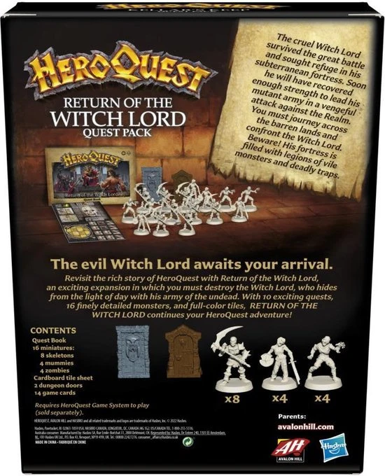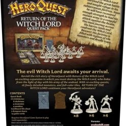 Ga opnieuw op bezoek en duik dieper in het rijke verhaal van het HeroQuest kerker kruipende avonturenspel. Met de Return of the Witch Lord-uitbreiding werken spelers samen om de Witch Lord te vernietigen, die zich met zijn leger van ondoden verbergt voor het daglicht. Spelers kunnen helemaal opgaan in de fantasie met het verbluffende artwork, 16 gedetailleerde miniaturen, full-colour tegels, en 10 spannende quests die niet te zien waren in het oorspronkelijke HeroQuest Game System.
