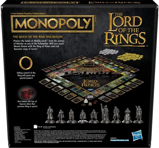 In het Monopoly Bordspel: The Lord of the Rings Editie stellen spelers zich voor dat ze in Middle-earth zijn als ??n van de Fellowship!