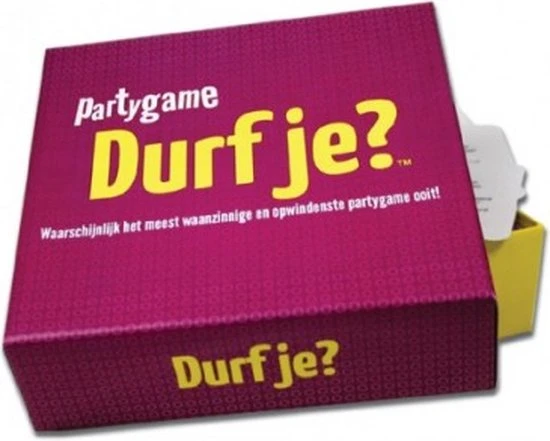 Durf je? is waarschijnlijk het meest waanzinnige en opwindenste partygame ooit. Denk aan de klassieke partygames Waarheid, Durven of Doen en Flesje draaien, maar dan op een heel nieuw niveau, met mobieltjes en smsjes en camera????s, gekke charades, g????nante vragen en leuke telefoongrapjes. Meer dan 100 onverwachte, g????nante en leuke vragen en meer dan 100 waanzinnige uitdagingen in ????????n doos. Een verfrissend nieuw partygame dat voor veel lachen en een hoop plezier zorgt! Held of Watje? is het perfecte party- en dinnergame en het ideale cadeau voor elke gelegenheid! Afmeting 140 x 140 x 40mm. Gewicht 0.5 kg.