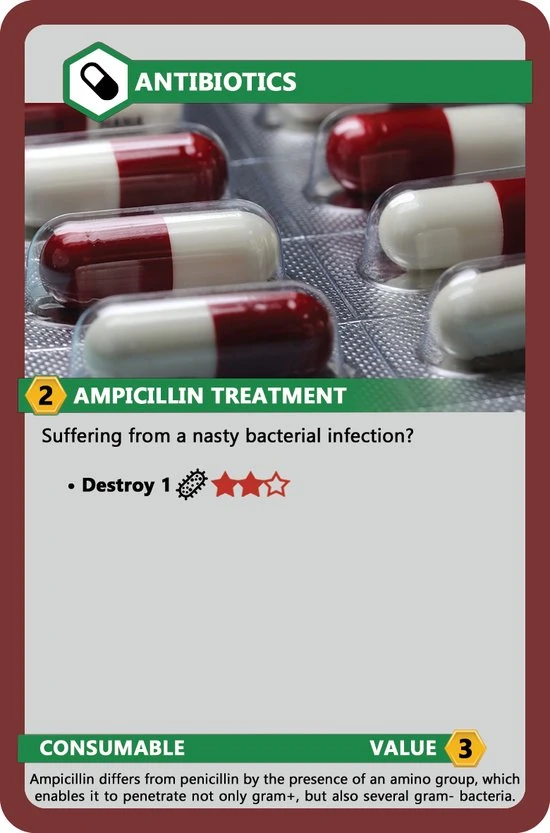 Hou jezelf gezond door zuinig met je HP om te gaan en val aan met infectiekaarten waarbij de hoeveelheid energiepunten (ATP) die je inlegt de ernst van de symptomen bepaalt. Val jij iemand aan die ziek is? Dan kan dit je eigen kop kosten! Er is namelijk een kans dat jij dan ook lijden zal aan de ziekte of het zelfs met de hele tafel deelt!