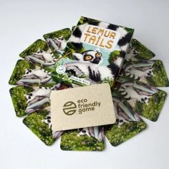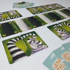 Lemur Tails is een tweepersoonsspel waar je twee staarten maakt door witte en zwarte staartkaarten af te wisselen. Je probeert zo lang mogelijke staarten te maken. Dat klinkt makkelijk genoeg, maar je maakt twee staarten en aan het eind van het spel win je als de kortste van je twee staarten langer is dan de kortste staart van je tegenstander. Je gebruikt de witte en zwarte (genummerde) kaarten om de staarten te maken en zet strategisch jokers en Zonnende Maki’s in om een voorsprong op je tegenstander te krijgen. Door het combineren van deze factoren kan je de langste korte staart maken en winnen.