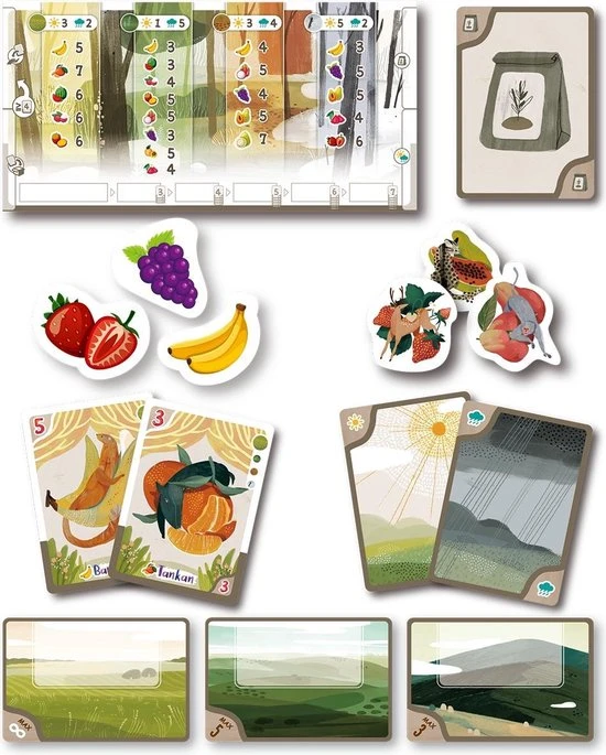 Het spel is opgedeeld in 4 seizoenen. Er is een kaartset voor elk seizoen, met een mix van fruitkaarten en weerkaarten. Terwijl de seizoenen wisselen zal de beschikbaarheid van bepaalde fruitsoorten komen en gaan. Elke speler trekt, om het spel te beginnen, 4 kaarten uit de stapel van het Lenteseizoen. Bij jouw beurt kun je kiezen om fruit te telen, door 2 kaarten uit te spelen op je velden, of fruit te oogsten voor punten, door een veld leeg te maken. Aan het eind van je beurt vul je jouw hand weer aan tot 4 kaarten. Als je kaarten trekt, kun je weerkaarten onthullen: een stralende zon of een stortbui. De stortbui blokkeert de stralende zon, maar als er op enig moment drie van dezelfde weerkaarten op tafel liggen, dan krijg je noodweer, waarbij ??n van je velden vernield wordt. Wanneer de stapel van het Winterseizoen op is, telt elke speler zijn of haar totale aantal punten. De speler met het hoogste puntentotaal wint!
