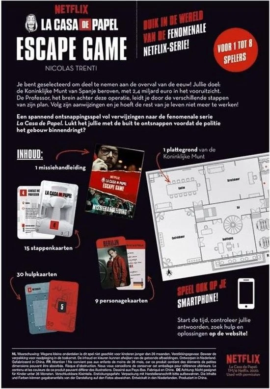 Een spannend spel vol verwijzingen naar de fenomenale serie La Casa de Papel. Je dringt binnen in de Koninklijke Munt van Spanje en duikt stap voor stap verder in het avontuur!