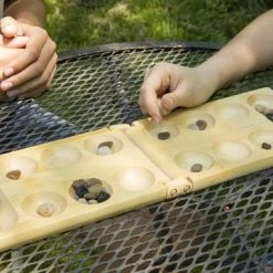Mancala is een spannend strategisch bordspel wat vooral in Afrika gespeeld wordt. Het ideale bordspel voor in je collectie naast Ganzenbord en Mens Erger Je Niet. Het is te spelen met 2 personen. Je speelt dit spel op een mancala bord en je gebruikt steentjes, deze worden meegeleverd. Het doel is om de stenen van de tegenstander te veroveren. Dit spel is ook ideaal om op reis mee te nemen.