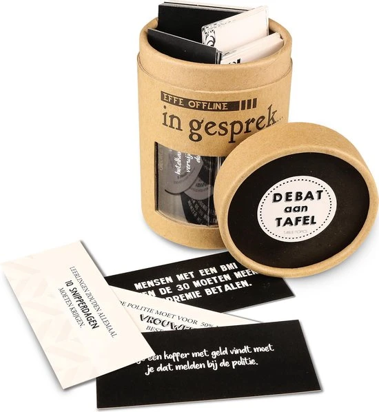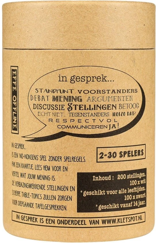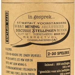 No-nonsns spel zonder spelregels. Pak een kaartje lees hem voor en vertel wat jou mening is. De verbazingwekkende stellingen en scherpe tabli-topics zullen zorgen voor diepgaande tafelgesprekken.
