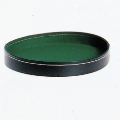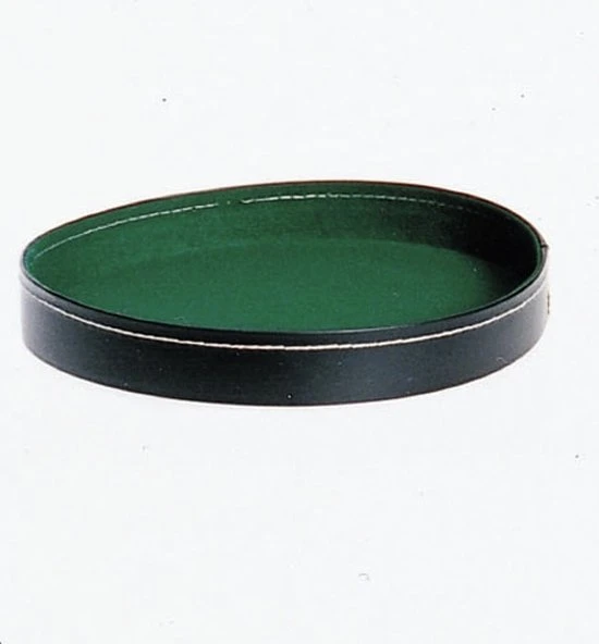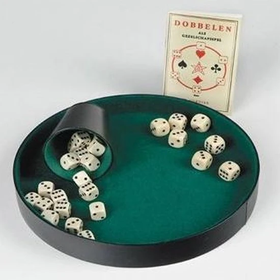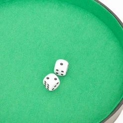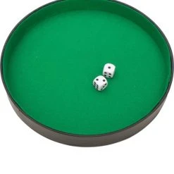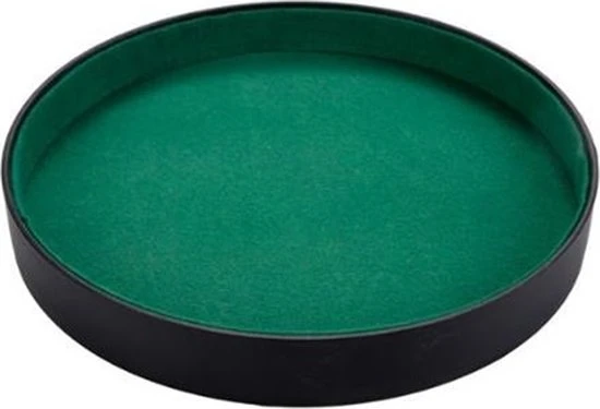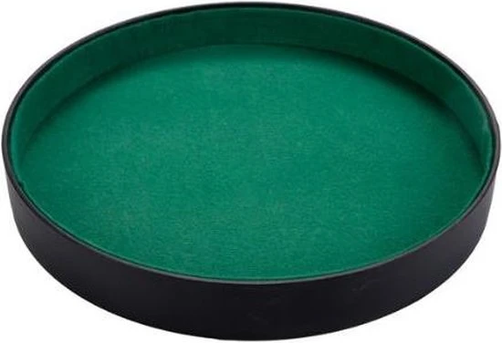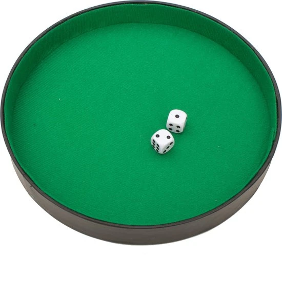Een ronde dobbelpiste van imitatieleer met groen vilten inleg.