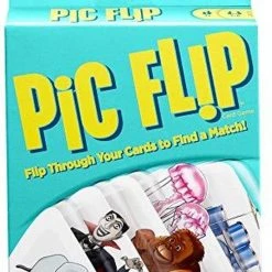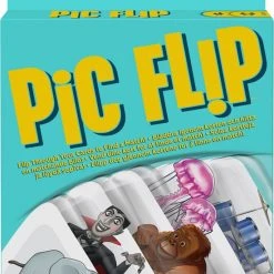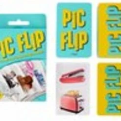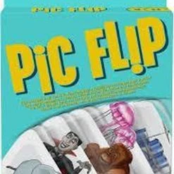 Pic Flip? is een knotsgek razendsnel kaartspel. Spelers kijken snel welke van hun kaarten bij de afbeelding passen en proberen zo al hun kaarten kwijt te raken. Zodra ze een passende kaart hebben gevonden, wordt onmiddellijk een andere afgeroepen en begint het zoeken opnieuw. Je moet dus snel denken, want de eerste speler die alle kaarten kwijt is, wint. Voor 2 tot 6 spelers vanaf 7 jaar.