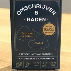 Dit hilarische pocketformaat (brievenbuspost!) raadspel bevat 55 kaartjes (1 spelregelkaart en 54 kaartjes met totaal 1080! begrippen). LET OP: GEEN ZANDLOPER INBEGREPEN dus gebruik een timer (op een telefoon). In dit partyspel, dat in iedere zak past en ook via videobellen gespeeld kan worden, strijden teams van 2 of meer spelers tegen elkaar! E?n teamlid omschrijft binnen 30 seconden zoveel mogelijk van 5 begrippen op een kaartje, terwijl de andere teamleden raden. Dit raadspel (waarvan er inmiddels 2 edities bestaan) werkt eigenlijk precies hetzelfde als andere omschrijf- & raadspellen. Maar er is een twist; hoe minder woorden worden gebruikt om iets te omschrijven, des te meer punten er te verdienen vallen (een begrip omschrijven met 5 woorden = 1 punt / met 4 woorden = 2 punten / met 3 woorden = 3 punten / met 2 woorden = 4 punten en met 1 woord = maar liefst 5 punten)! De vraag is natuurlijk of het dan wel geraden wordt ? en de grap is dat de omschrijvende speler al voordat de begrippen zichtbaar zijn, moet aangeven met maximaal hoeveel woorden een begrip omschreven gaat worden! Door slim gebruik te maken van het materiaal staan op ieder opgavekaartje 4x 5 begrippen. De 1080 opgaven zijn zeer divers; bekende personen, plaatsen, programma ?s en gebruiksvoorwerpen. Onder de tijdsdruk ga je de meest vreemde woorden gebruiken. Dat wordt lachen gieren brullen. Veel speelplezier gewenst!