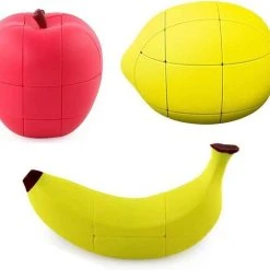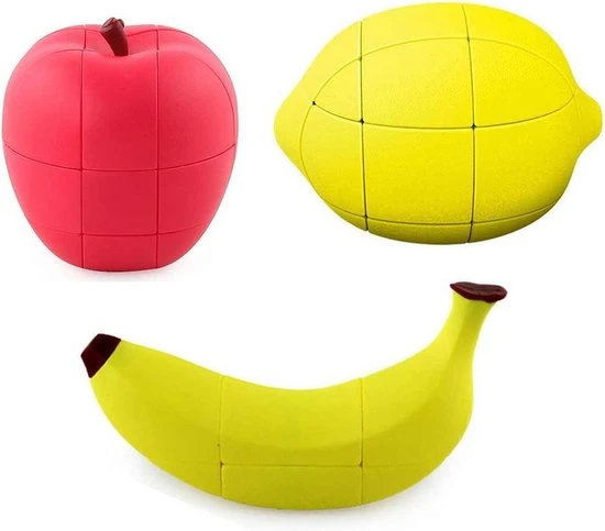 De fruit cube set bestaat uit 3 fruitige kubussen met ieder zijn eigen moeilijkheidsgraad. De appel- en citroenpuzzel zijn 3 x 3 puzzels en de banaan is er een van 2 x 2 x 3. Op zoek naar een leuke ?n lekkere puzzelkubus? Dan is de Fruit Cube Series Rubiks cube set iets voor jou!