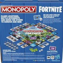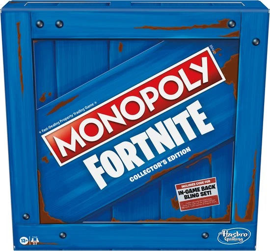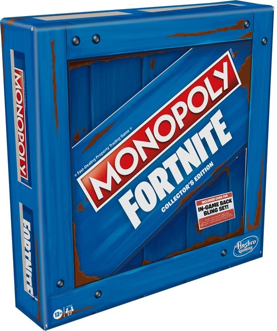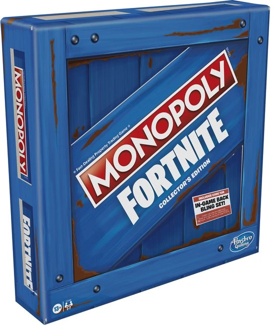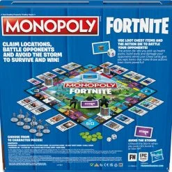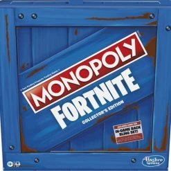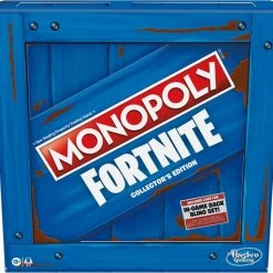 De Monopoly: Fortnite-verzamelaarseditie biedt een Fortnite-ervaring met Health Point-fiches in plaats van Monopolygeld en eigendomsvakjes geïnspireerd op Fortnite. Er is keuze uit 10 zinken pionnen, zodat spelers met hun favoriete personage kunnen spelen. Spelers gaan het bord rond, claimen locaties, strijden met tegenstanders en vermijden de storm. De laatst overgebleven speler wint, als alle andere spelers geen Health Point-fiches meer hebben!