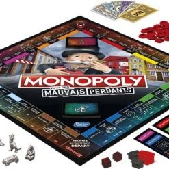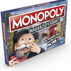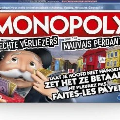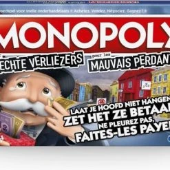 Laat je hoofd niet hangen … Zet het ze betaald! Heb je er genoeg van om te verliezen met Monopoly? Hier is het bordspel Monopoly voor slechte verliezers. Deze hilarische variatie op het Monopoly-spel maakt winnaars van de verliezers. Spelers verdienen geld door dingen te doen die doorgaans frustrerend zijn in het spel, zoals naar de gevangenis gaan, huur betalen of bankroet gaan. Wie echt op de rand van de afgrond staat, kan zich herpakken met de grote Mr. Monopoly-pion die een speler voordelen op alle andere spelers verleent. Dus begin te spelen, neem je langverwachte wraak en wees blij dat je verliest! Met dit spel voor spelers vanaf 8 jaar zal een spelletjesavond met de familie nooit meer hetzelfde zijn.