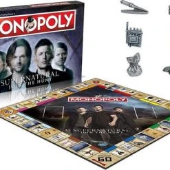 Join Sam and Dean in the epic struggle against evil, and race to end the war between Heaven and Hell. As the Apocalypse draws closer, it is up to you to accumulate enough knowledge and power to rid the world of all things unholy, and to rise above your opponents to become the greatest hunter of all. Evil lurks around every corner, and even friends can become potential enemies, so you must use your wits to stay one step ahead of everyone else. The very fate of humanity hangs in the balance! Buy up hideouts and seedy motels, compete with your opponents for Monsters, Demons and Horsemen of the Apocalypse, and grab a Pie card for an unexpected bonus or penalty! Featuring six exclusive tokens – Hex Bag, Bobby?s Flask, EMF Detector, Angel Blade, Cheeseburger and the iconic Car – this brand new edition of MONOPOLY is a must for fans of the enduring and beloved Supernatural saga.