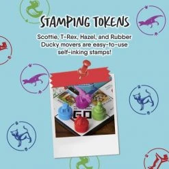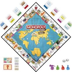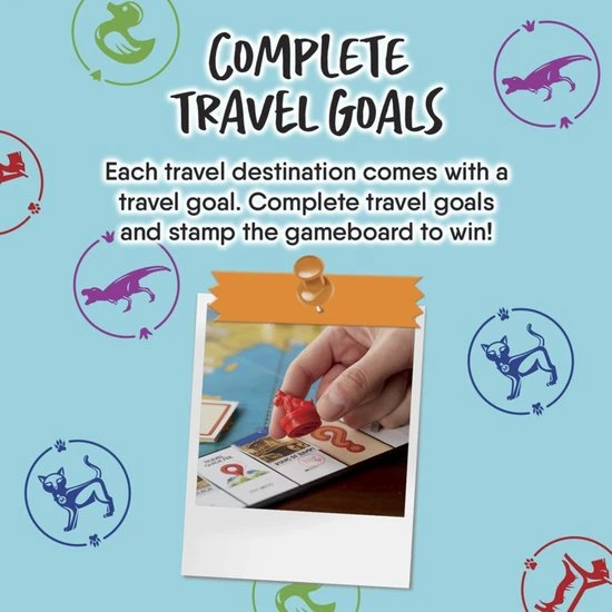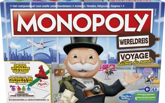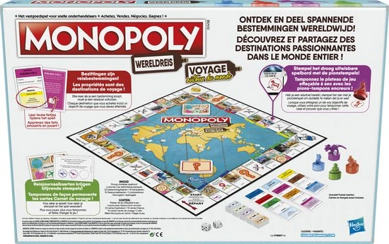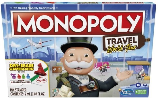 Een variatie op het klassieke Monopolyspel waarin spelers spannende reisbestemmingen ontdekken en bezoeken. Spelers kopen bestemmingen, voltooien reisdoelen en stempelen het droog uitwisbare spelbord met hun pionstempel om te winnen.
