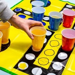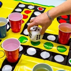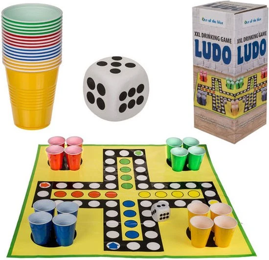 Inhoud: 1x Ludo/Mens Erger Je Niet mat (90 x 90cm), 16x cups, 1x schuim dobbelsteen.