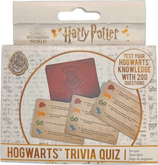 Small and lightweight, this Hogwarts Trivia Quiz is perfect for taking with you on a long journey, on holiday, or take on your next sleepover to keep everyone off their phones and spend some quality, fun time together. To keep them safe when not in use the cards are supplied in an antique leather look box decorated with the Hogwarts Crest and includes full gameplay instructions.