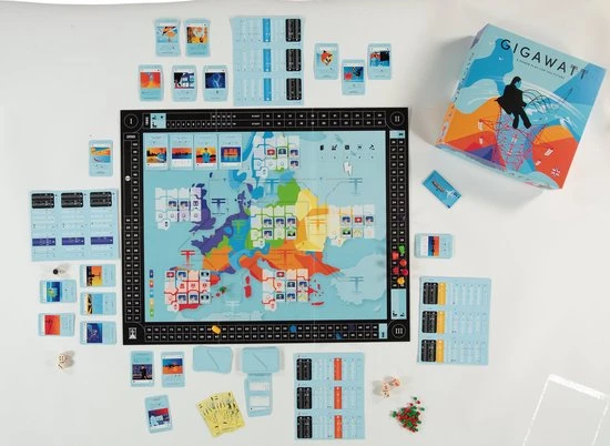 Contains: 1 Game Board, 80 Technology Cards, 18 Player Pawns, 140 Power Plants, 16 Connection Upgrades, 95 GigaMoney, 6 Construction Sheets, 160 Electricity Cubes, 6 Dice, 1 Phase Marker, 2 Power Plant Trays, 1 Rulebook