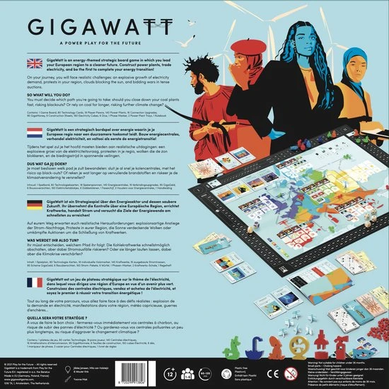 Inhoud: 1 Spelbord, 80 Technologiekaarten, 18 Spelerspionnen, 140 Energiecentrales, 16 Verbindingsupgrades, 95 GigaGeld, 6 Bouwoverzichten, 160 Elektriciteitsblokjes, 6 Dobbelstenen, 1 Faseschijf, 2 Houders voor Energiecentrales, 1 Handleiding