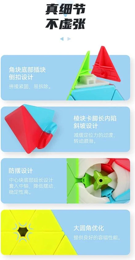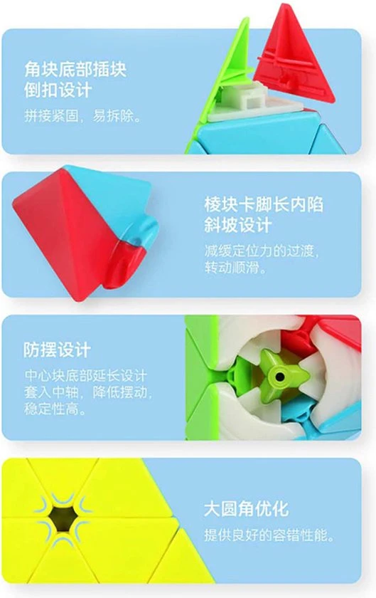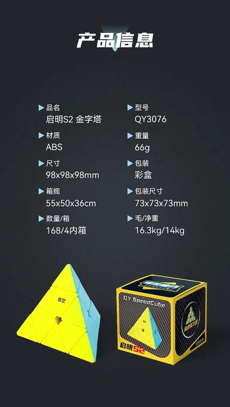 De QiMing S2 Pyraminx is de nieuwste budgetvriendelijke kubus van QiYi MoFangGe. Deze pyraminx gebruikt een reeks plastic hobbels en holtes voor uitlijning. Voor beginners of oplossers met een beperkt budget.