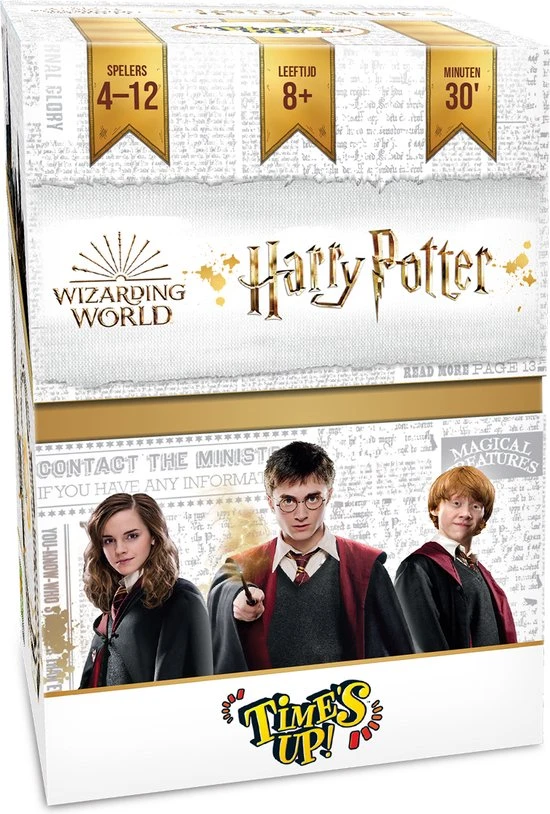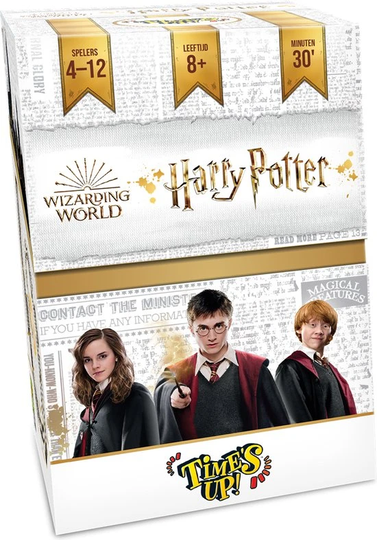 Speciale Harry Potter editie van Time?s Up!, het co?peratieve kaartspel dat bestaat uit 3 verschillende spelrondes. Probeer tijdens elke ronde jouw team zoveel mogelijk Harry Potter begrippen op de kaarten te laten raden door een beschrijving te geven, een enkel woord te noemen of door het begrip uit te beelden. Het team dat na drie rondes de meeste kaarten heeft geraden en dus de meeste punten heeft verzameld, wint het spel! Ideaal voor de fans van Harry Potter!