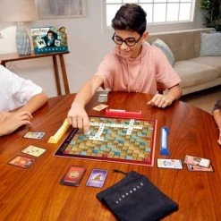 Deze speciale editie van het Scrabble spel is een eerbetoon aan de unieke woordenschat uit de wereld van Harry Potter en zijn vrienden! Net als het originele Scrabble heeft dit spel een bord, 4 plankjes, een letterzakje en spelregels. Maar bij de Harry Potter editie van Scrabble zit ook een speciale woordenlijst van tovenaarswoorden die je met de Scrabble letterblokjes kunt vormen. Als iemand een woord legt op een Zweinsteinplek, mag die speler een magische kaart trekken waarmee je meer punten kunt scoren! Bij het spel zitten 36 Zweinsteinkaarten, waarmee het spel nog magischer wordt. Als je fan ben van de zeven boeken en acht films uit de wereld van Harry Potter, vind je dit speciale Scrabble spel vast fantastisch. Het is maar kort verkrijgbaar!