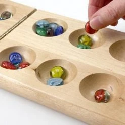 Kalaha of Mancala is een klassiek spel van Afrikaanse herkomst, in een blikken doos.
