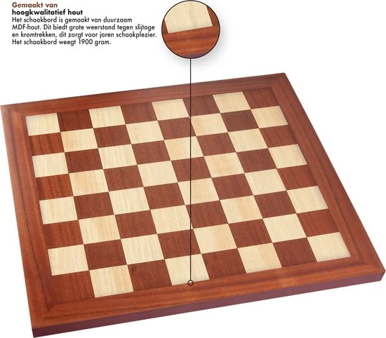 Het handgemaakte, houten schaakbord van Sincer is met vakmanschap gemaakt van hoogkwalitatief MDF-hout en vervolgens gelakt. Het schaakbord weegt maar liefst 1900 gram, dit zorgt voor een stevig schaakbord dat niet buigt of vervormt in de loop der jaren. Het schaakbord is zeer overzichtelijk: de afmetingen van het schaakbord zijn 48x48cm met 50x50mm schaakvakken. Het schaakbord is geschikt voor recreatieve schaakpartijen, maar ook voor schaaktoernooien. Het Sincer schaakbord garandeert jaren lang schaakplezier en wordt geleverd in een prachtige verpakking: perfect om cadeau te geven aan iemand anders of jezelf!