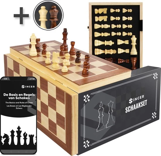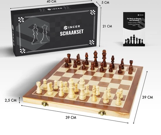 ♚♛ Vind je schaken een fantastisch spel en kun je het uren spelen? Of wil je dit geweldige spel graag leren spelen? Het schaakspel van Sincer is precies wat je zoekt! Je kunt schaken met iedereen die de spelregels kent van jong tot oud. Met het schaakspel kun jij laten zien of je je vader, opa, vriend of andere tegenstander te slim af bent en hem schaakmat zet! ♚♛