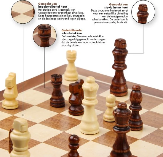 ✔ Materiaal schaakbord: Walnoothout en dennenhout