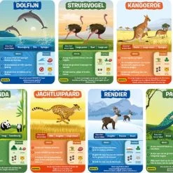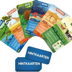 Stel tot 10 vragen om het dier op de speelkaart te raden. Is het een carnivoor? Is het een huisdier? Leeft het dier in een groep? Denk goed na, stel slimme vragen. Gebruik je hintkaarten goed en word de eerste speler die 7 speelkaarten wint!